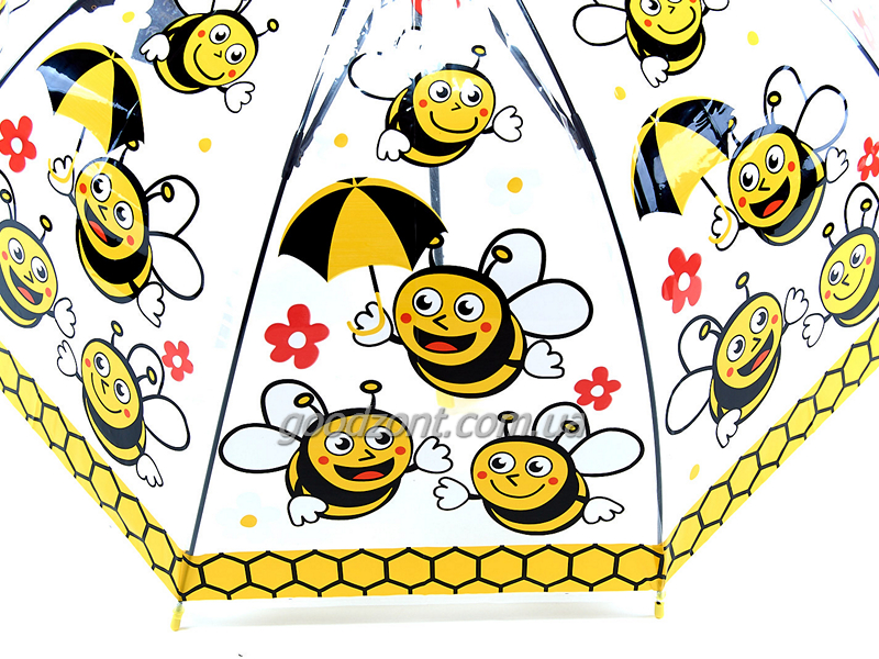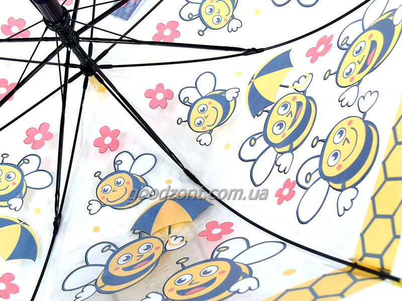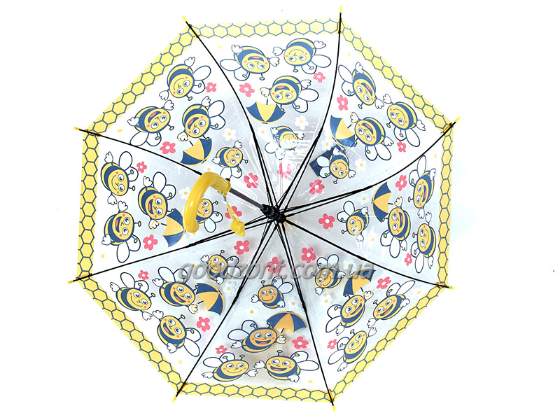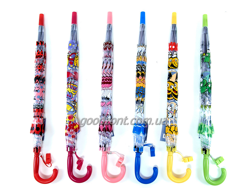Прзрачный детский зонтик трость с красивыми и яркими изображениями порадует и защитит вашего ребенка от дождя в непогоду.